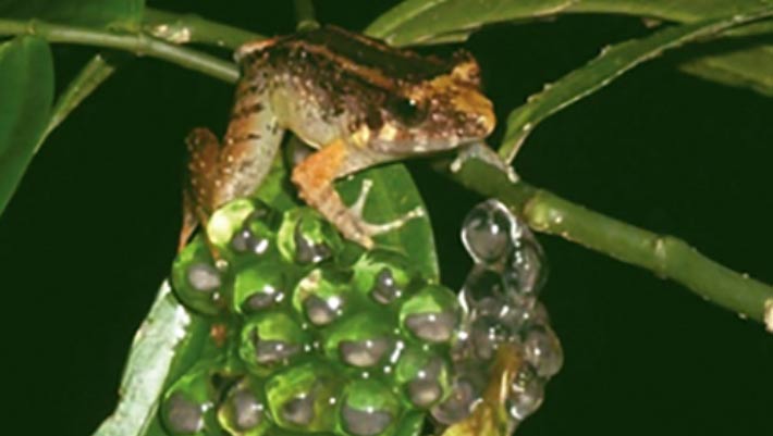 “Male frogs guard one or more eggs garnished with leaves or moss-covered rocks 1 to 2 meters above slow-moving streams, rivulets, or leachate,” the researchers said. said.