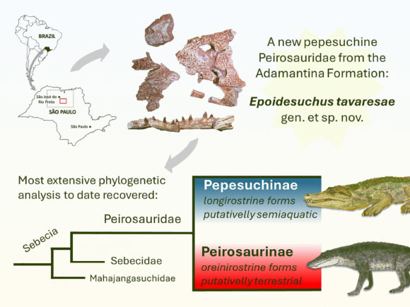 “In Africa, Strochrosuchus occurred simultaneously with SarcosuchusOn the other hand, in the Bauru group of Brazil, which represents the greatest extreme of pepestinid diversity, only one putative neostinid has been described so far, a large predatory quadruped with a semi-aquatic habit. There are no other records. ”