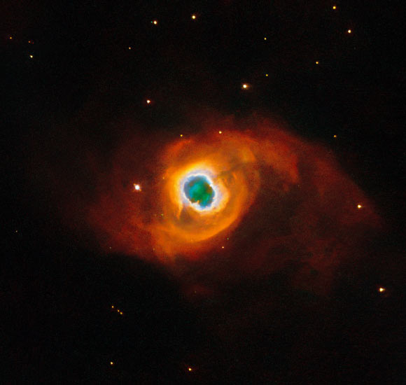 “The bright inner ring of the Kohoutek 4-55 is surrounded by a loose layer of gas, all wrapped in a wide halo of ionized nitrogen,” the astronomer said.
