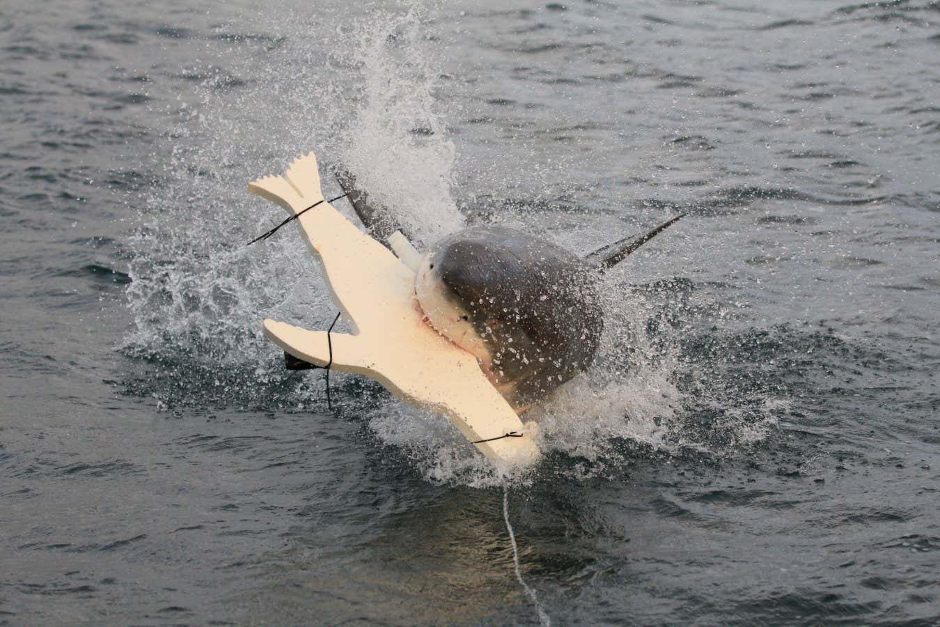 A great white shark attacks a dummy seal during an experiment in which lights were used to deter shark attacks