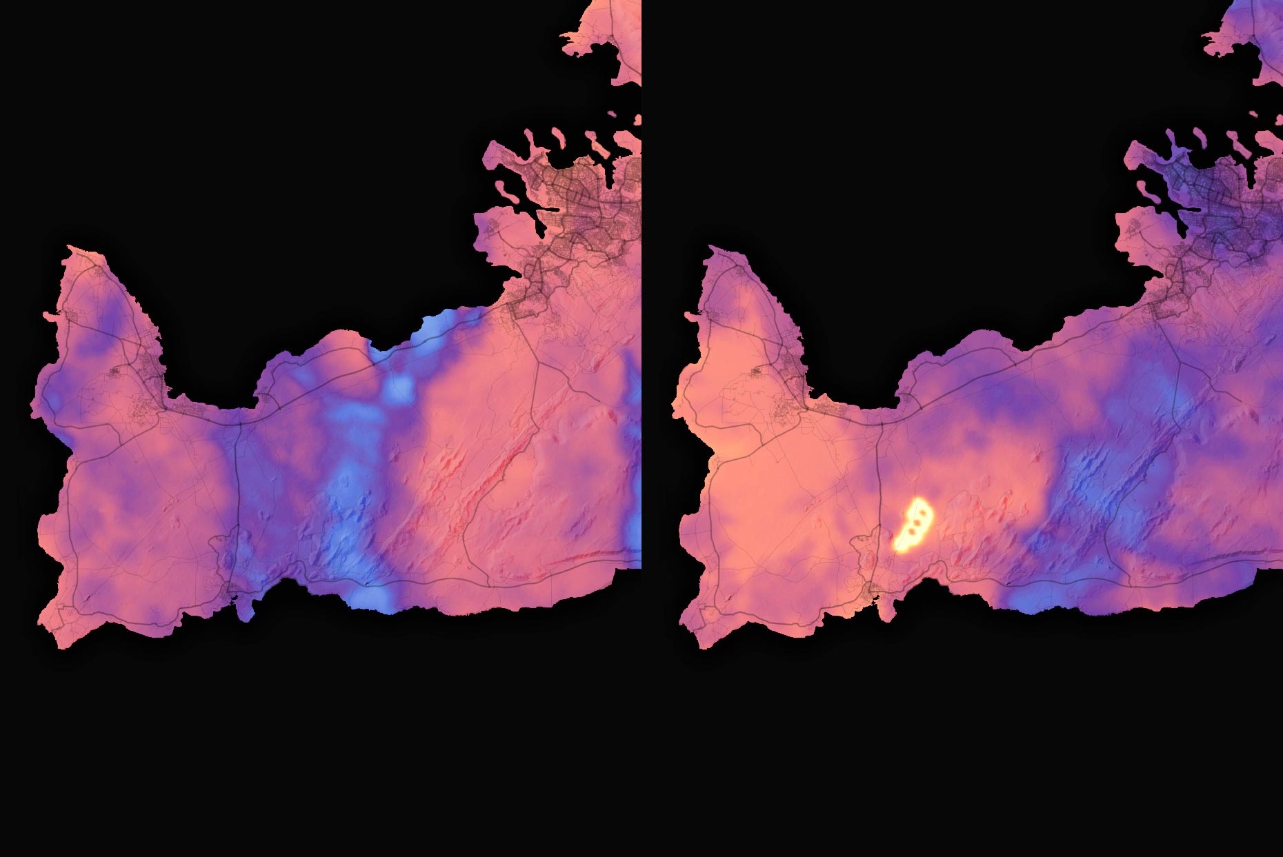 “What you see in these images is that the active lava flows are very hot compared to the surrounding land and clouds,” said Simon Kahn, a volcanologist at Michigan Technological University. “Areas of darker temperatures look like terrain where lava is flowing, but where eruptive fissures are not active and there is colder lava, or where gas plumes or clouds obscure the surface. It could be a territory.” topographic map In part of this area, three hills reaching a height of about 200 meters can be seen on the west side of the eruption fissure.