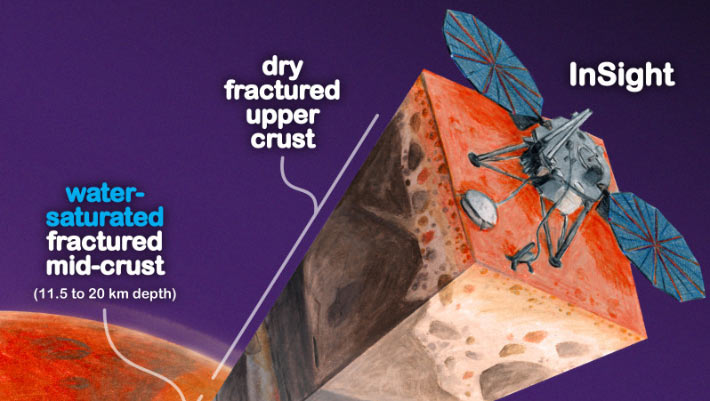 “The new paper analyzes the deeper crust and concludes that the available data are best explained by a water-saturated mid-crust beneath the InSight location.”
