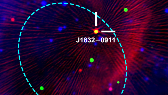 In the sky, ASKAP J1832-0911 appears to be situated among debris from a supernova, which commonly contains neutron stars formed during such events.