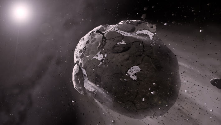 Impressions of an artist on a rocky asteroid. Image credits: Mark A. Garlick, Space-Art.co.uk / Warwick University / Cambridge University.